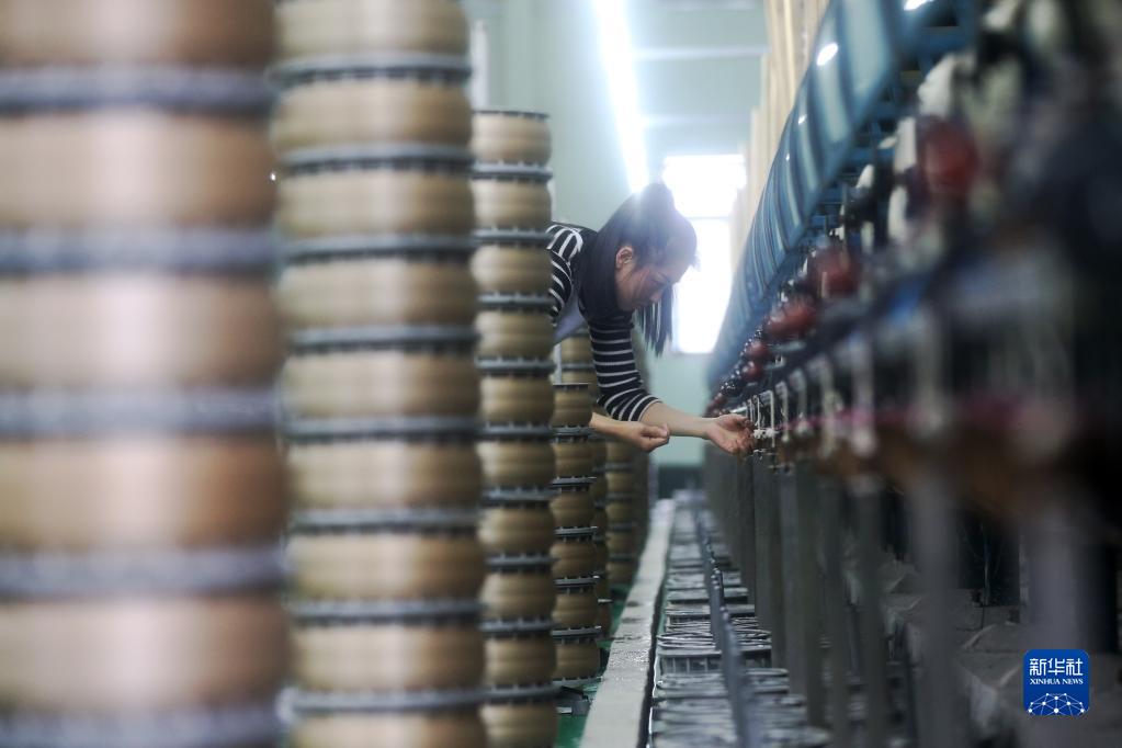 2月23日,工人在重慶市黔江區海通絲綢公司生產車間忙碌。