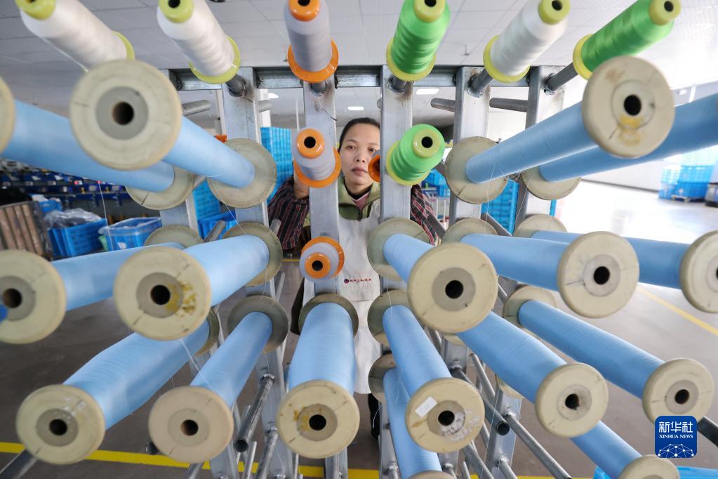 2月25日,工人在浙江省湖州市德清縣新安鎮(zhèn)一家紡織企業(yè)生產(chǎn)車間內(nèi)忙碌。
