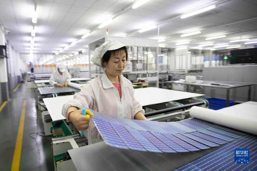 2月24日,在山東省東營市廣饒縣的東營大海科林光電有限公司智能化太陽能組件生產車間,工人在生產出口的光伏組件。