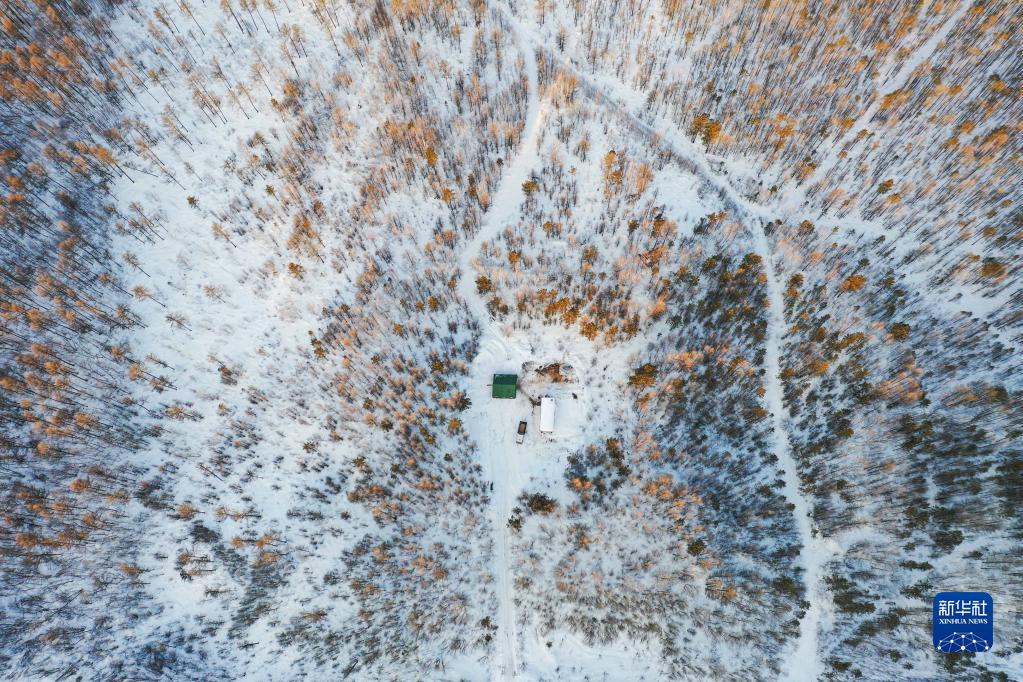 2月23日拍攝的內蒙古森工集團滿歸森工公司烏龍岱林場景色(無人機照片)。