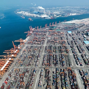 這是廣西欽州港集裝箱碼頭(2月25日攝,無人機照片)。