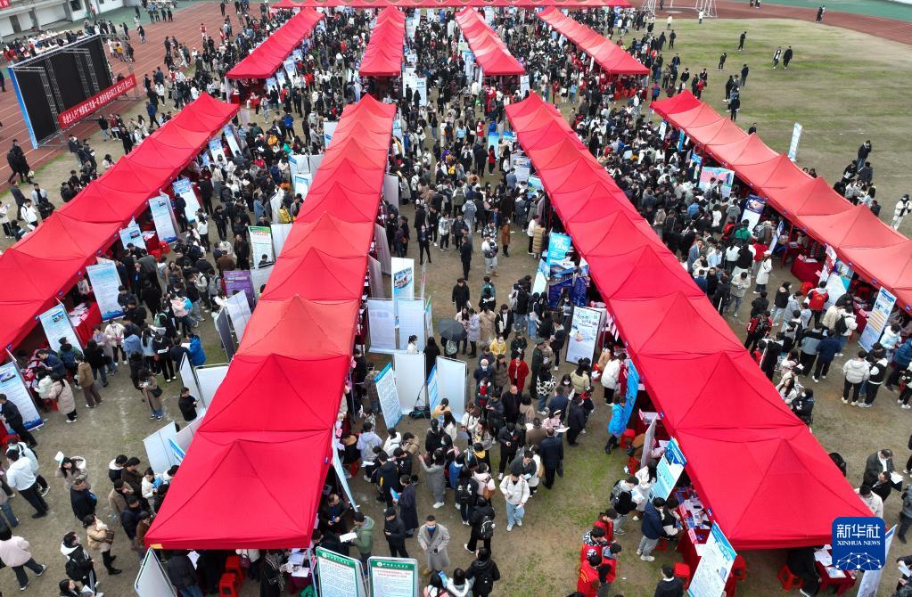 這是2月25日拍攝的雙選會現場(無人機照片)。