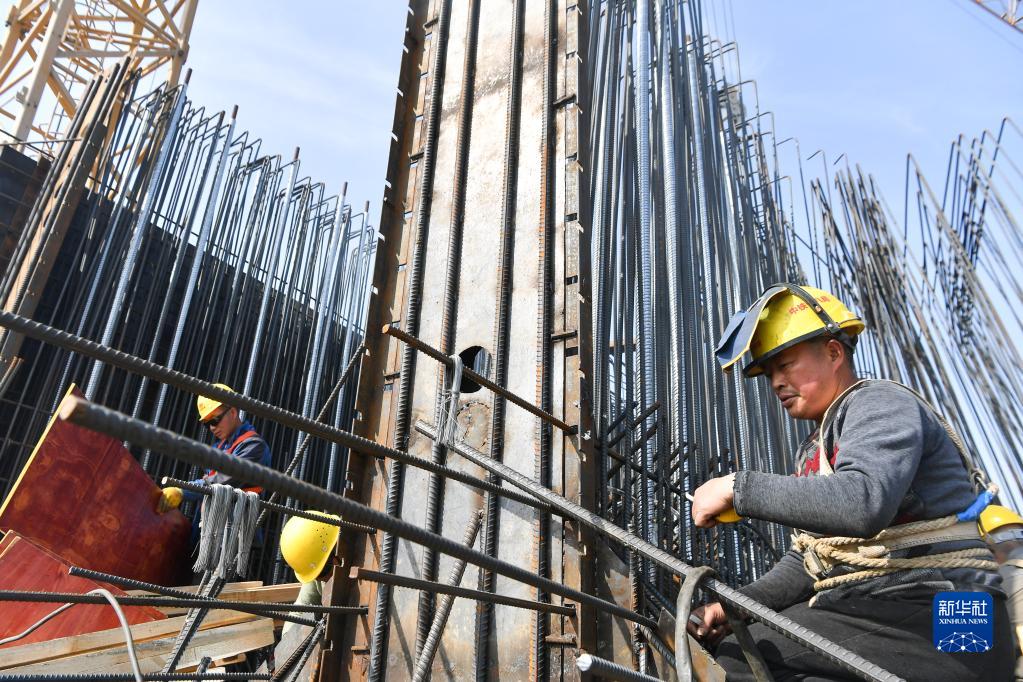 2月24日,中鐵十八局工人在位于西安市周至縣的陜西引漢濟(jì)渭工程渭河管橋施工現(xiàn)場(chǎng)工作。