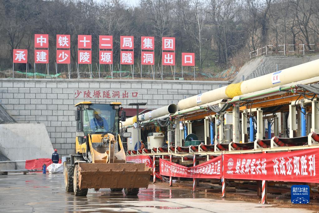 2月24日,中鐵十二局工人在位于西安市長安區(qū)的陜西引漢濟(jì)渭工程少陵塬隧洞施工現(xiàn)場工作。