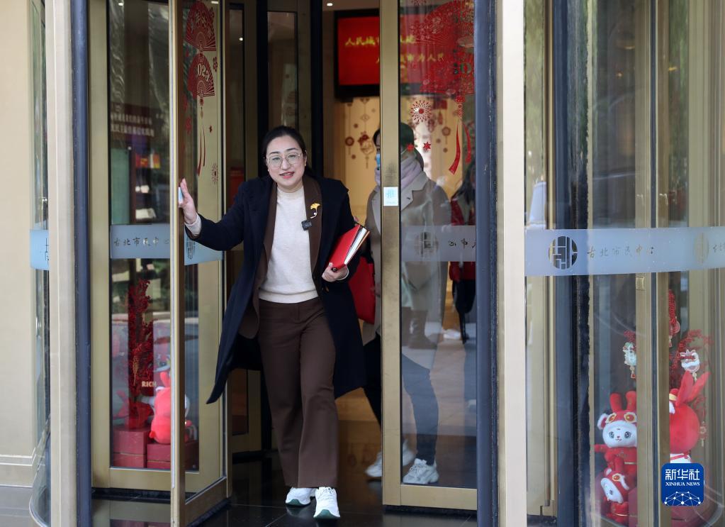 2月17日,盛弘走出上海虹橋街道古北市民中心。新華社記者 劉穎 攝
