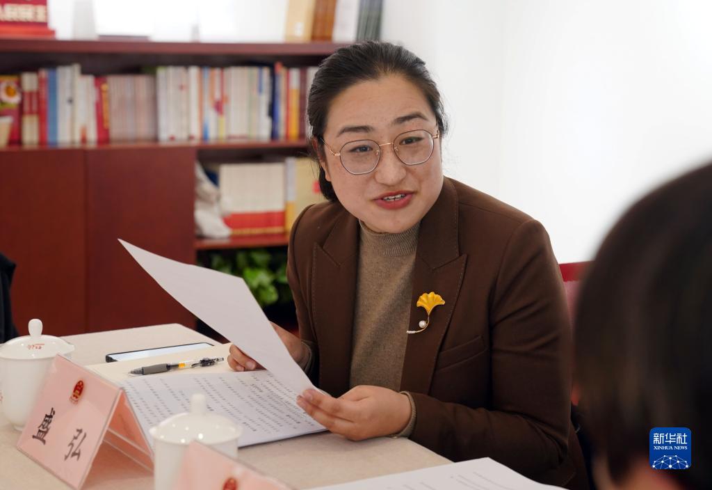 2月7日,在上海虹橋街道古北市民中心召開(kāi)的立法意見(jiàn)征詢會(huì)上,盛弘和參會(huì)代表交流。新華社記者 劉穎 攝