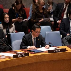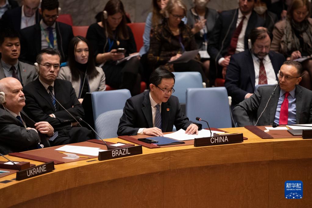 2月24日,在位于紐約的聯合國總部,中國常駐聯合國代表團臨時代辦戴兵在安理會烏克蘭問題公開會上發言,闡述中方關于政治解決烏克蘭危機的立場。