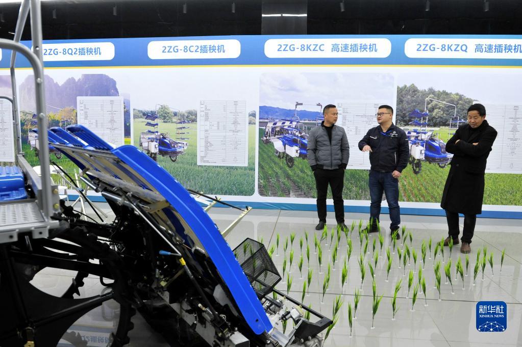 2月24日,觀展者在選購咨詢插秧機。