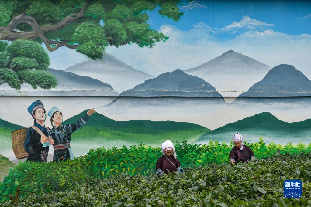 2月23日,貴州省普安縣茶源街道聯盟村的茶農在采摘春茶。
