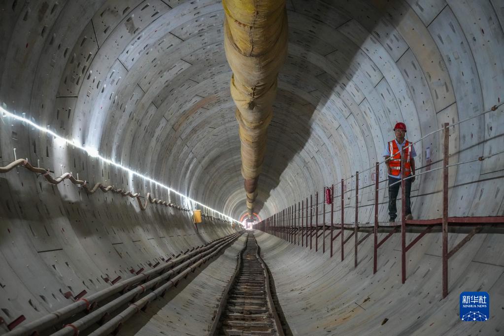 2月25日,一名技術(shù)員行走在貫通的東莞地鐵1號(hào)線水濂山站右線盾構(gòu)隧道內(nèi)。