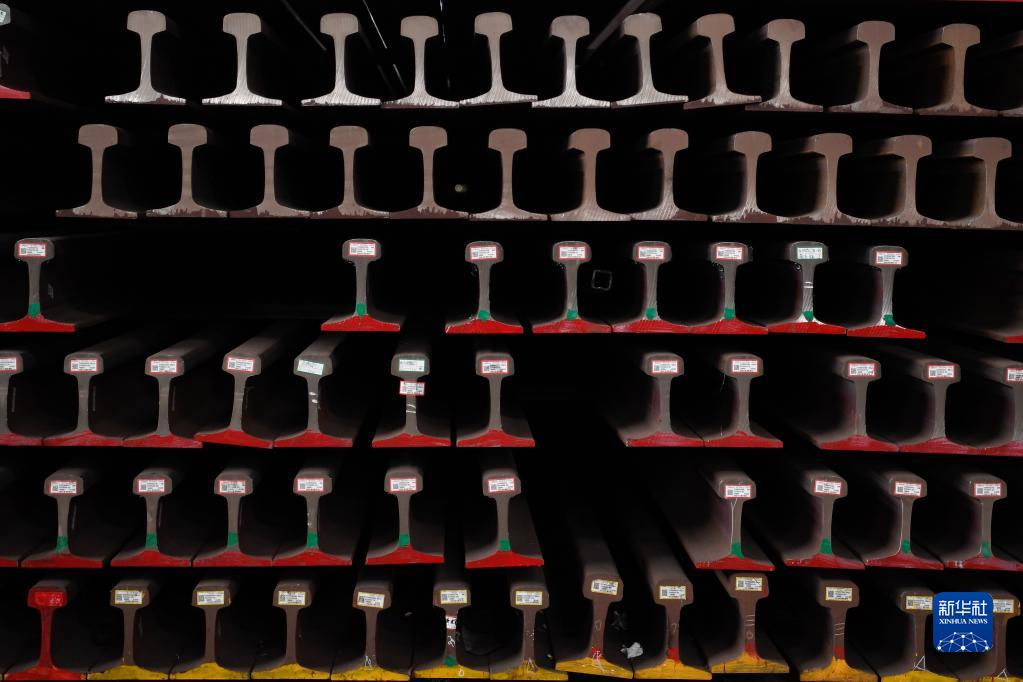 攀鋼釩軌梁廠鋼軌垛位里的百米鋼軌(2月24日攝)。