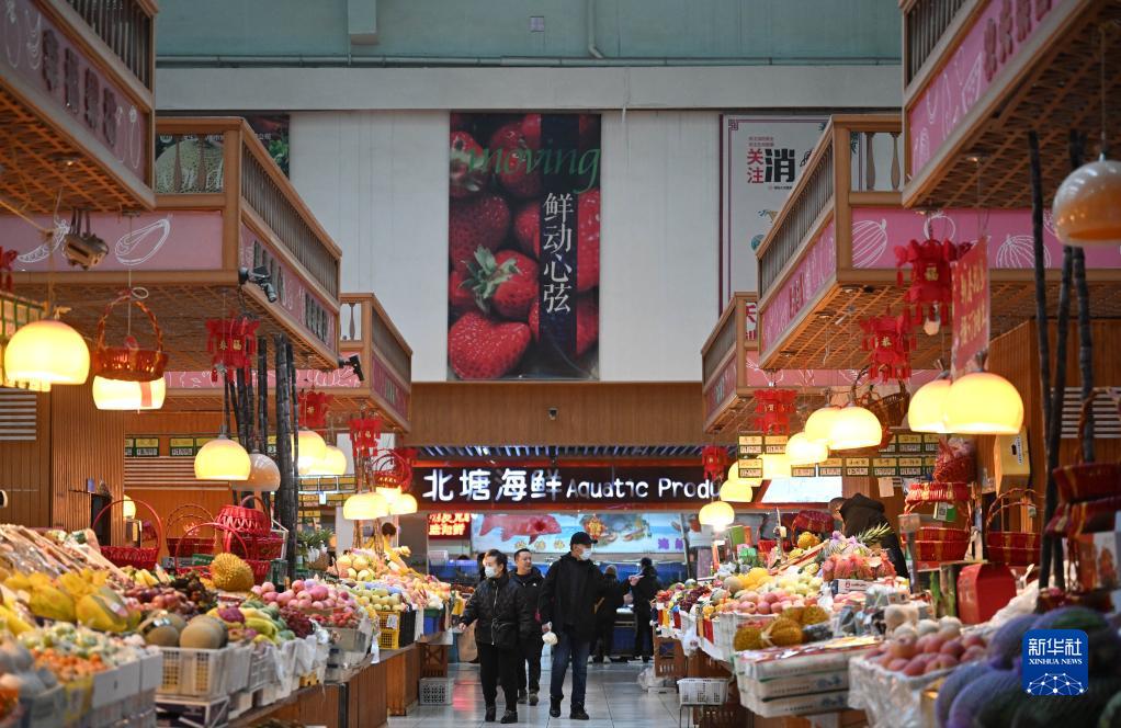 居民在中新天津生態城第三社區中心菜市場內選購食材(2月24日攝)。