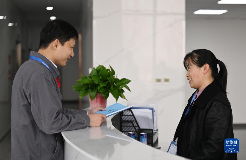 在萊伯泰科(天津)科技有限公司,劉學(xué)(左)和于麗新在交流(2月23日攝)。今年37歲的劉學(xué)曾在北京工作多年。2019年,他和妻子于麗新一起被派到天津?qū)氎婢┙蛑嘘P(guān)村科技城,參與分公司的設(shè)立。現(xiàn)在他們一家人已經(jīng)在天津落戶。于麗新希望家人健康平安、孩子學(xué)業(yè)有成。劉學(xué)說,妻子的愿望就是他的愿望。