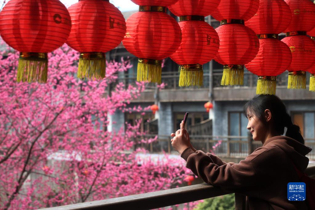 2月25日,游客在重慶市黔江區(qū)濯水古鎮(zhèn)觀賞梅花。