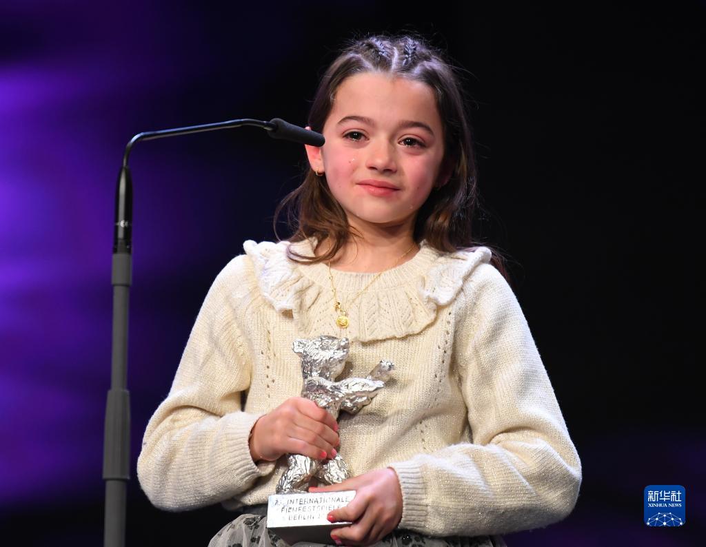 2月25日,在德國柏林,西班牙小演員索菲婭·奧特羅在頒獎儀式上領獎。索菲婭·奧特羅憑借影片《兩萬種蜜蜂》獲得最佳主角銀熊獎。