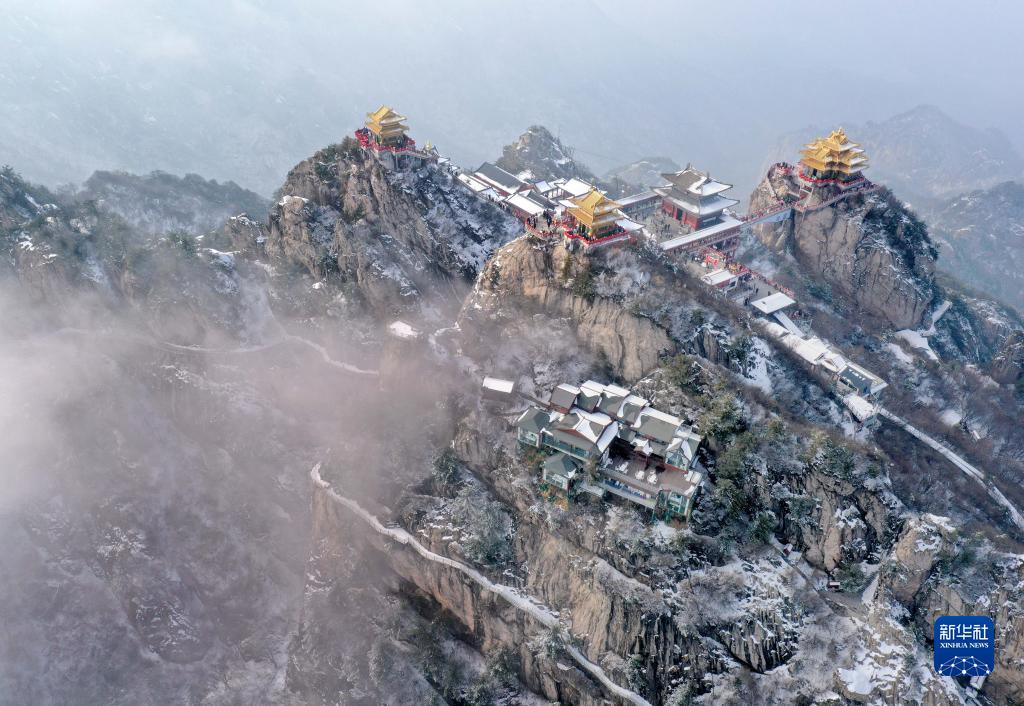 這是2月23日拍攝的洛陽(yáng)市欒川縣老君山風(fēng)景區(qū)(無(wú)人機(jī)照片)。