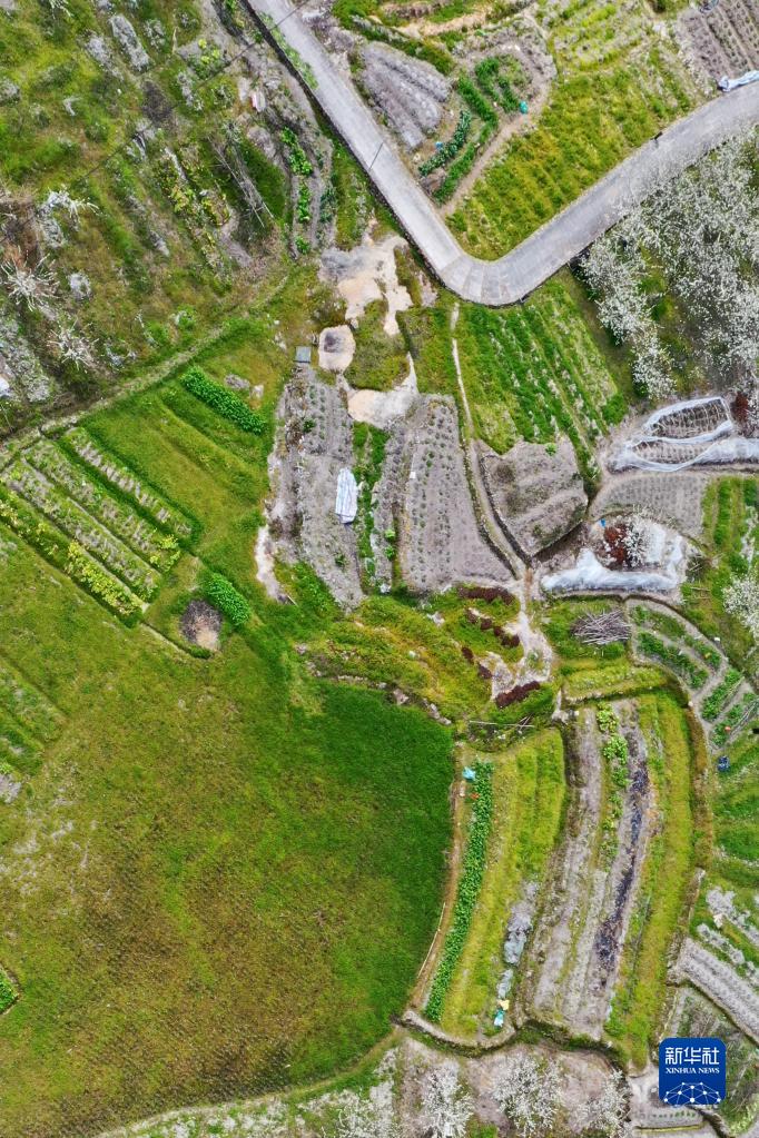春耕時節,在福建省福州市鄉村山嶺間,一塊塊形狀各異、五彩斑斕的田地猶如大地上的拼圖,呈現別樣的春耕畫卷。
