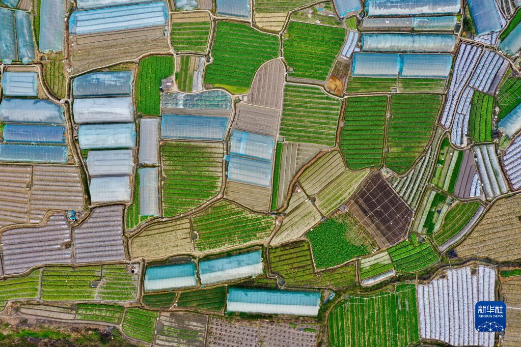 2月25日拍攝的福州市閩侯縣荊溪鎮蔬菜基地景觀(無人機照片)。
