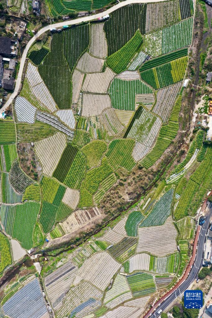春耕時節(jié),在福建省福州市鄉(xiāng)村山嶺間,一塊塊形狀各異、五彩斑斕的田地猶如大地上的拼圖,呈現(xiàn)別樣的春耕畫卷。