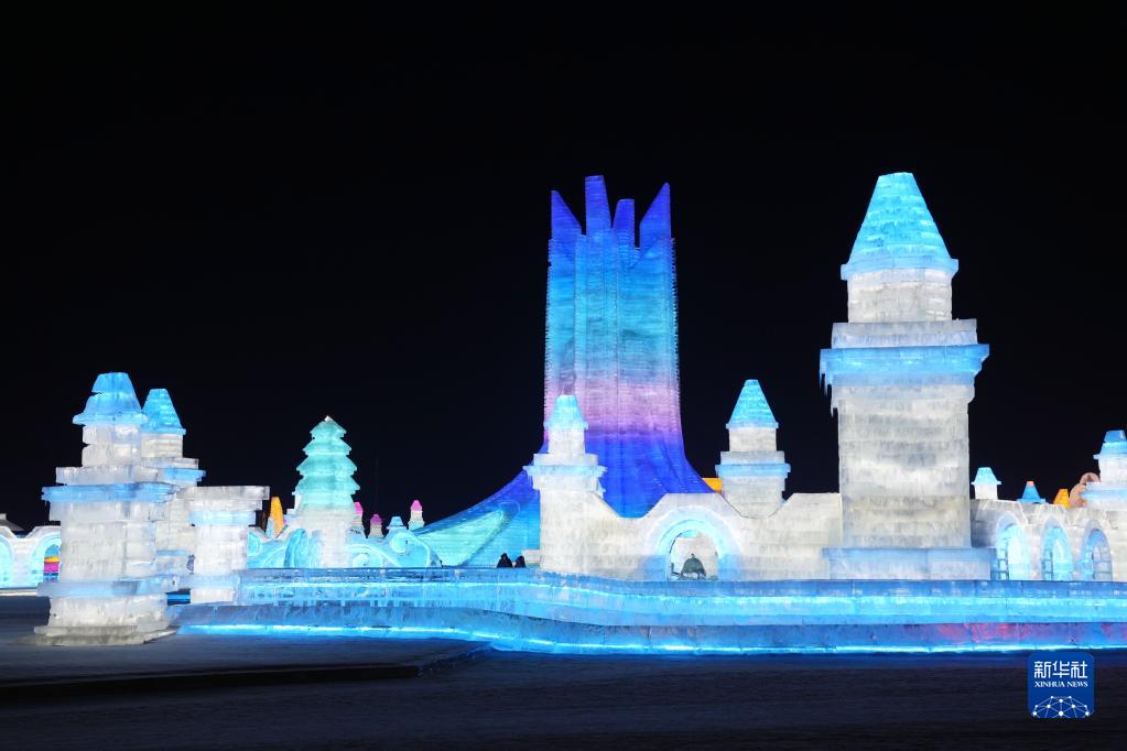 2月25日,游客在哈爾濱冰雪大世界園區游玩。