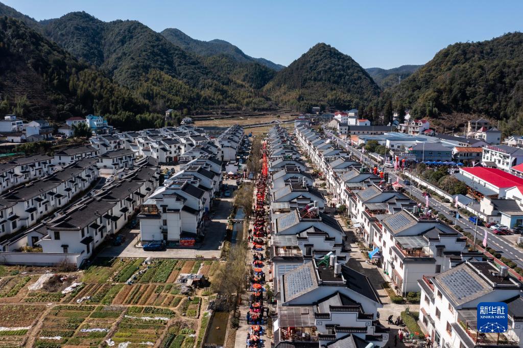 2月26日空中俯瞰蓮花鎮戴家新村的百家宴(無人機照片)。