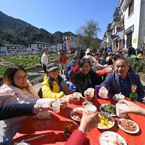 當日,上千名游客來到浙江省建德市蓮花鎮戴家新村民宿一條街,參加鄉村特色百家宴,感受新農村“舌尖上的幸福”。本次鄉村百家宴也標志著2023建德市蓮花鎮鄉村民俗旅游文化節正式開啟。