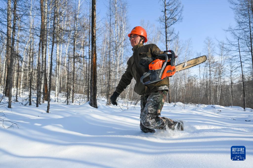 2月23日,烏龍岱林場402工隊職工石祥龍在山中蹚雪前行。