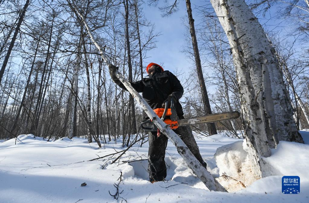 2月23日,烏龍岱林場402工隊職工溫樹昌在林區作業。