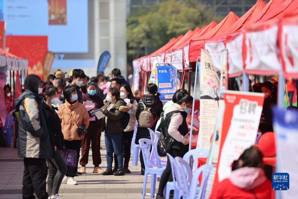 當日,一場春季大型招聘會在福建廈門五一文化廣場舉行,現場百余家用人單位提供崗位需求,吸引求職者前來應聘。