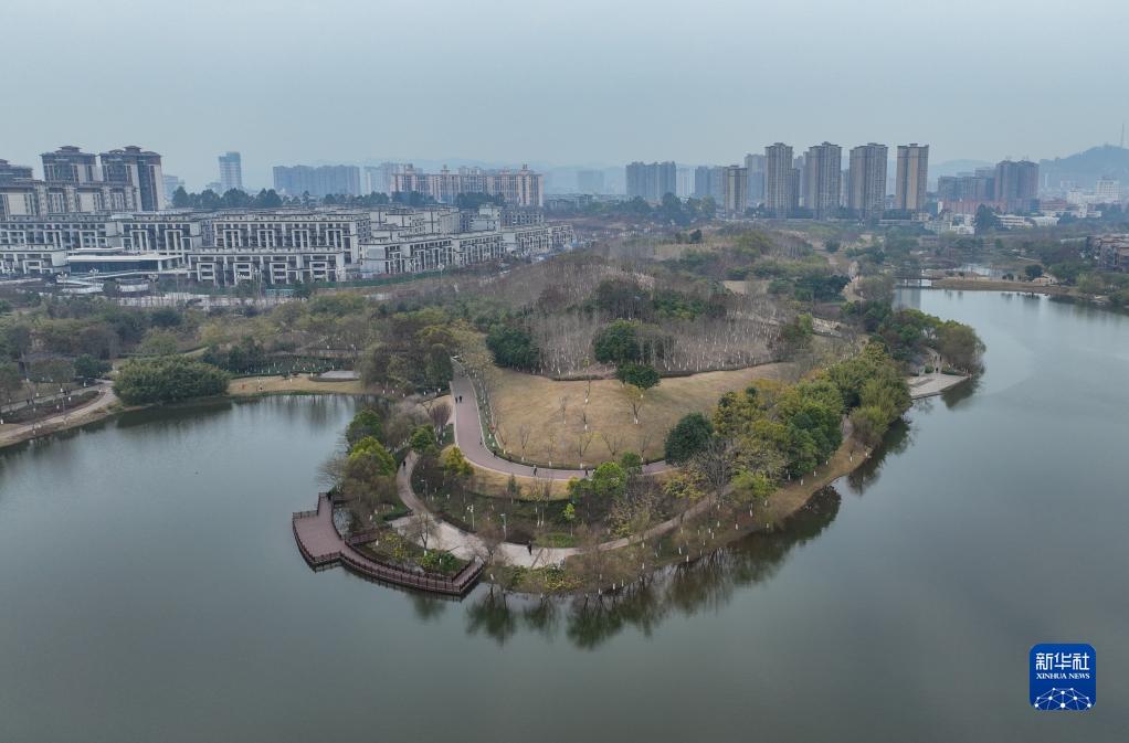 這是2月26日在眉山市仁壽縣拍攝的城市濕地公園(無人機照片)。