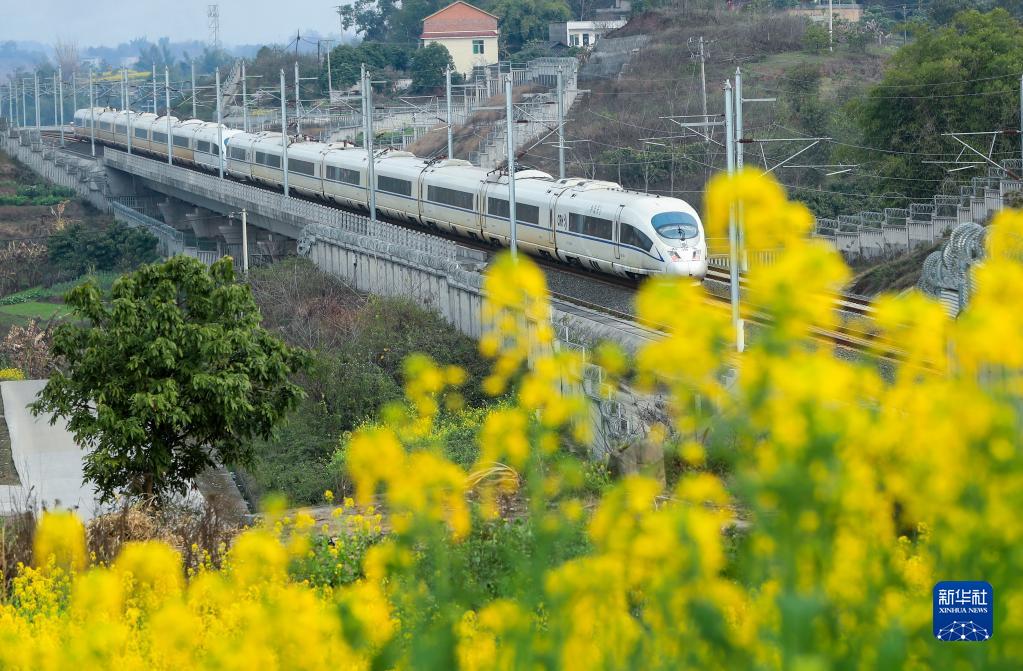 2月27日,動車組列車行駛在四川省瀘州市龍馬潭區境內。