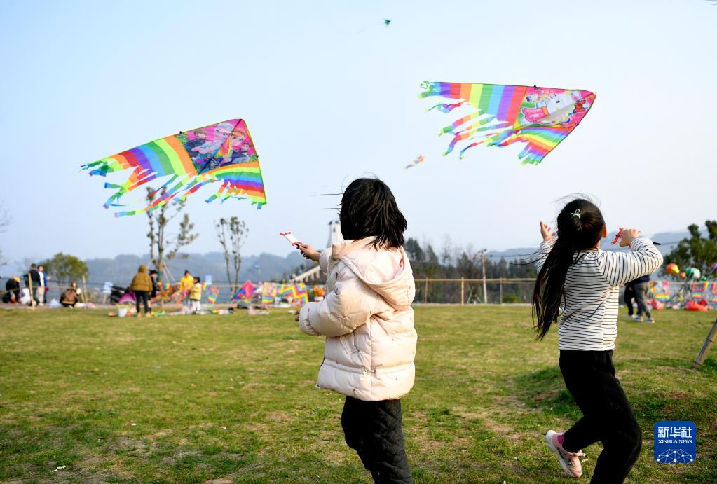 春光明媚,人們踏青出游,放飛風箏,樂享春日美好時光。