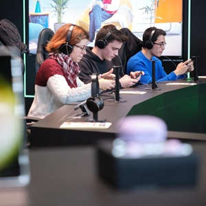 2月27日,參觀者在西班牙巴塞羅那舉行的世界移動通信大會上體驗(yàn)手機(jī)游戲。