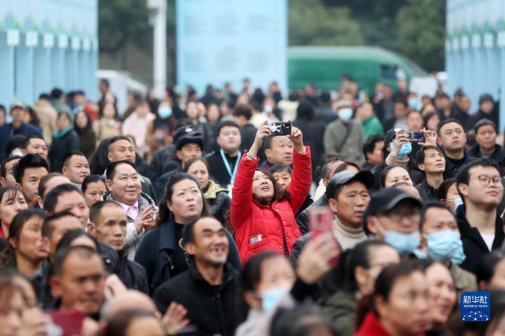 2月27日,人們在重慶市黔江區武陵文化廣場招聘活動上查看拍攝求職信息。