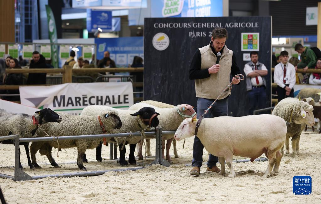 2月27日,在法國巴黎舉行的第59屆法國國際農(nóng)業(yè)博覽會上,養(yǎng)殖戶牽著羊參加比賽。
