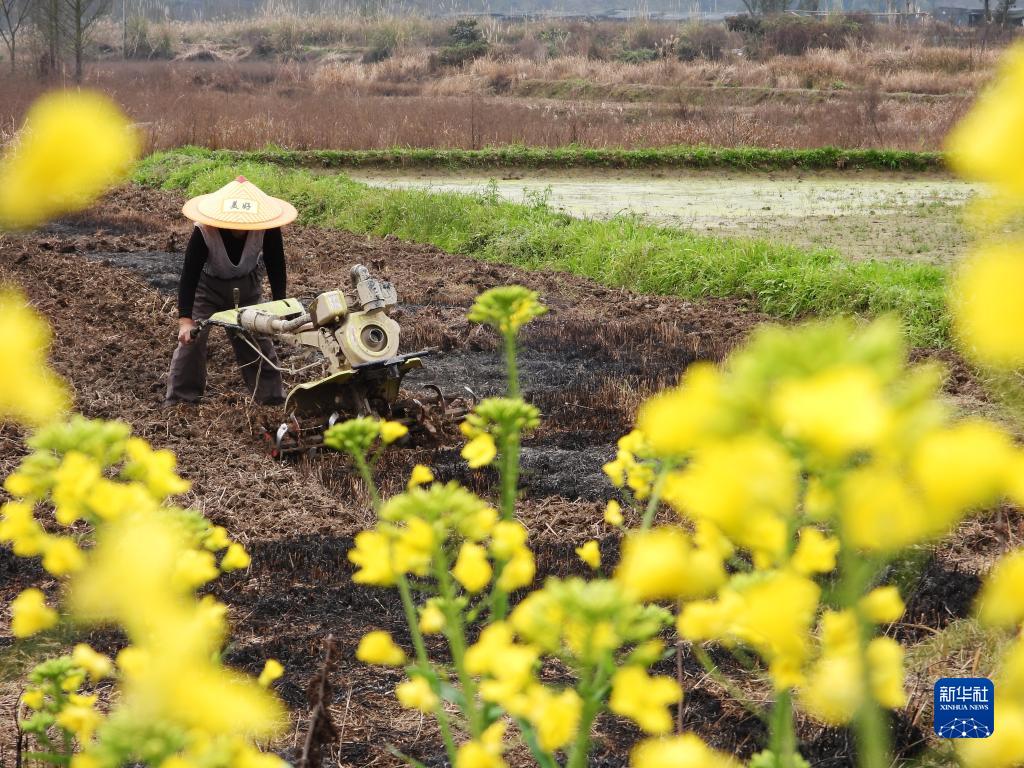 2月27日,在四川省達(dá)州市高新區(qū)金埡鎮(zhèn)金通村,村民駕駛旋耕機(jī)翻田。
