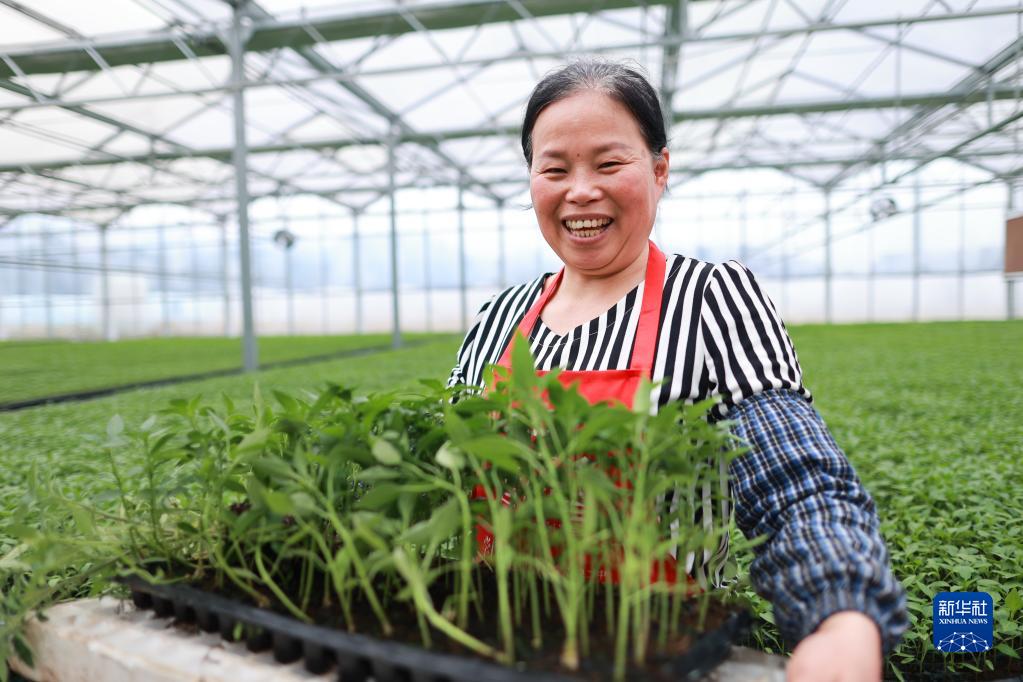 2月28日,當地一名婦女在搬運辣椒苗。