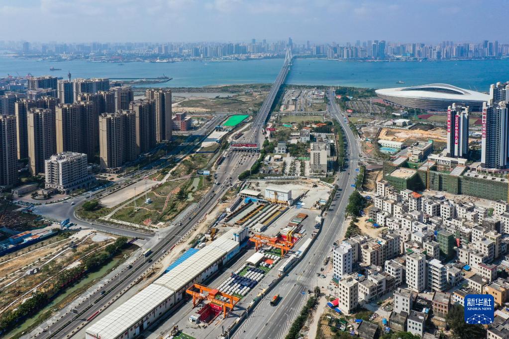 2月28日,廣湛鐵路湛江灣海底隧道盾構(gòu)區(qū)間“過海穿城”(無人機(jī)照片)。