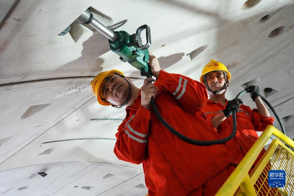 2月28日,施工人員在廣湛鐵路湛江灣海底隧道盾構(gòu)區(qū)間鉚固隧道管片。