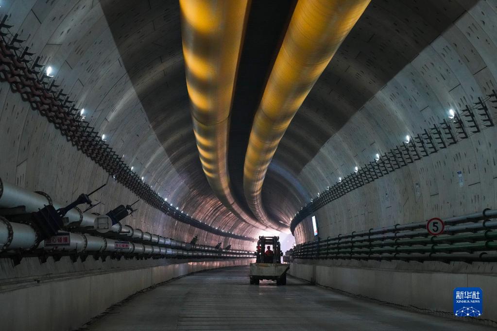 2月28日,工程車輛行駛在廣湛鐵路湛江灣海底隧道盾構區間。