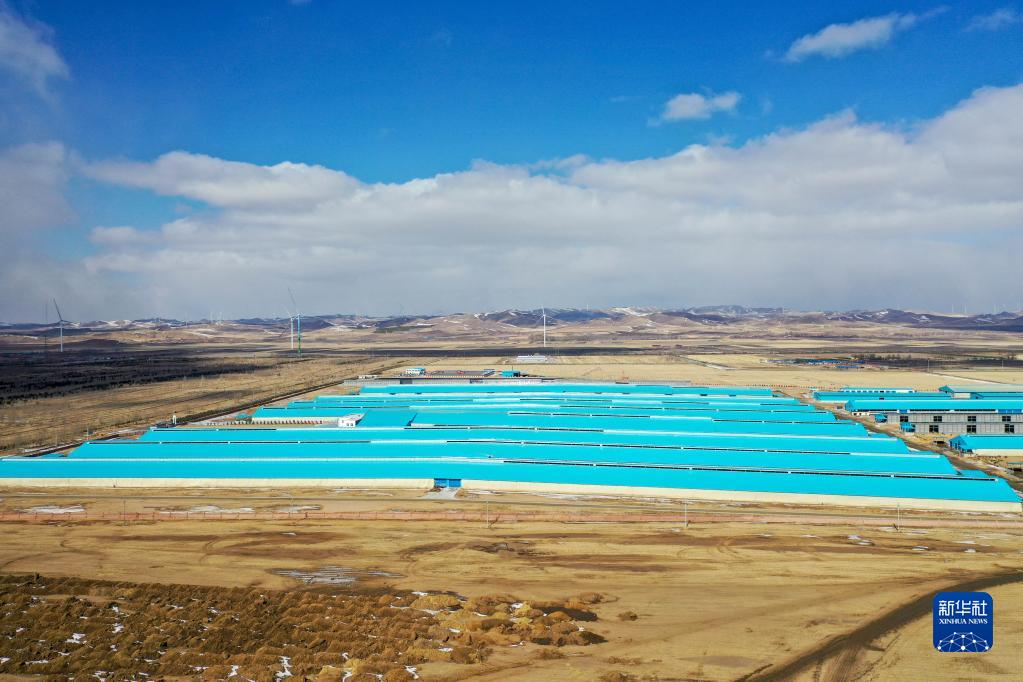 這是2月28日在豐寧縣魚兒山鎮拍攝的一家智能牧場(無人機照片)。