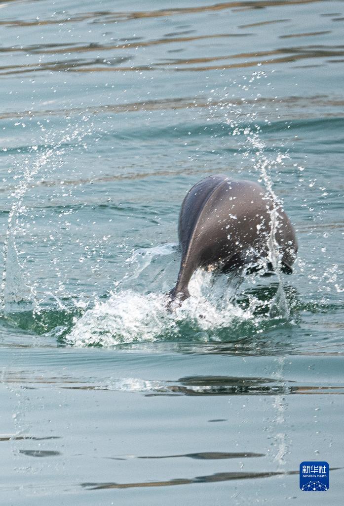2月27日,在湖北省宜昌市江邊,長江江豚在水中嬉戲。
