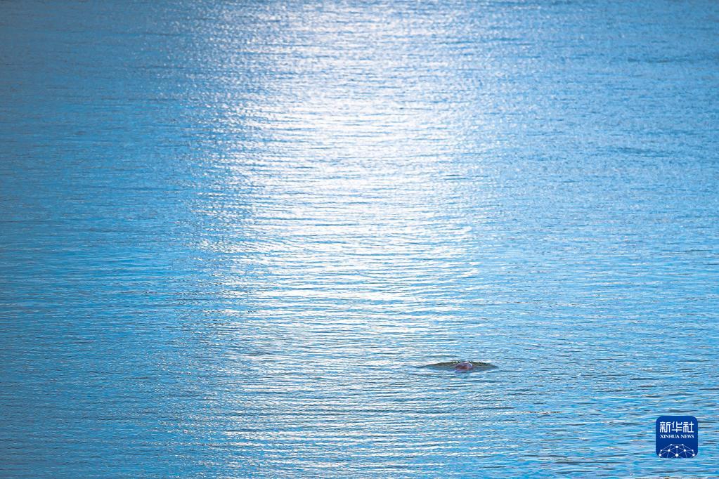 在湖北省宜昌市,長(zhǎng)江江豚在水中嬉戲(2022年10月3日攝)。