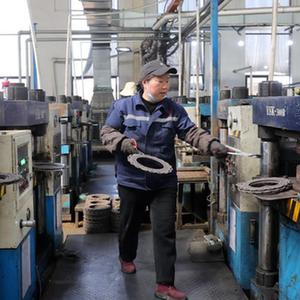 2月28日,在淮北市濉溪經濟開發區一家制動部件生產企業,工人在車間生產剎車盤。