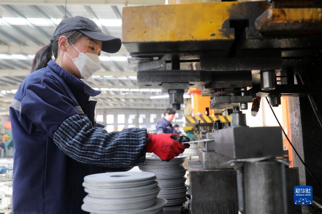 2月28日,在淮北市濉溪經(jīng)濟(jì)開發(fā)區(qū)一家制動(dòng)部件生產(chǎn)企業(yè),工人在車間生產(chǎn)剎車盤。