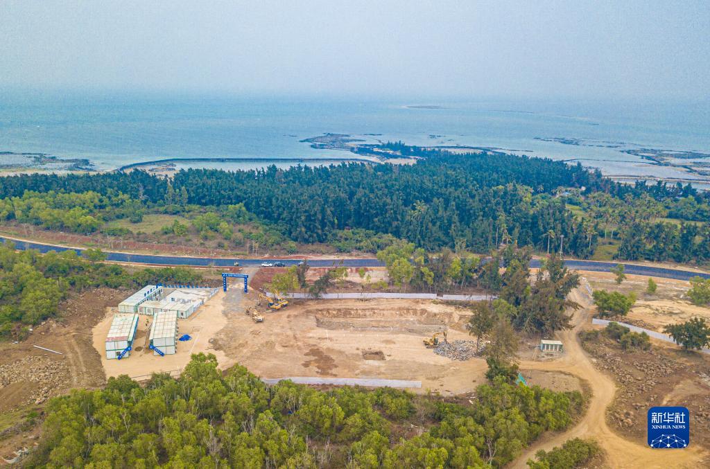 在海南省儋州市拍攝的建設中的“火山海岸”驛站和環島旅游公路(無人機照片,2月24日攝)。