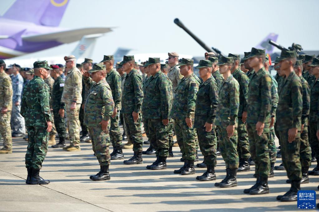 2月28日,多國軍人在泰國羅勇府烏塔堡海軍基地出席開幕式。
