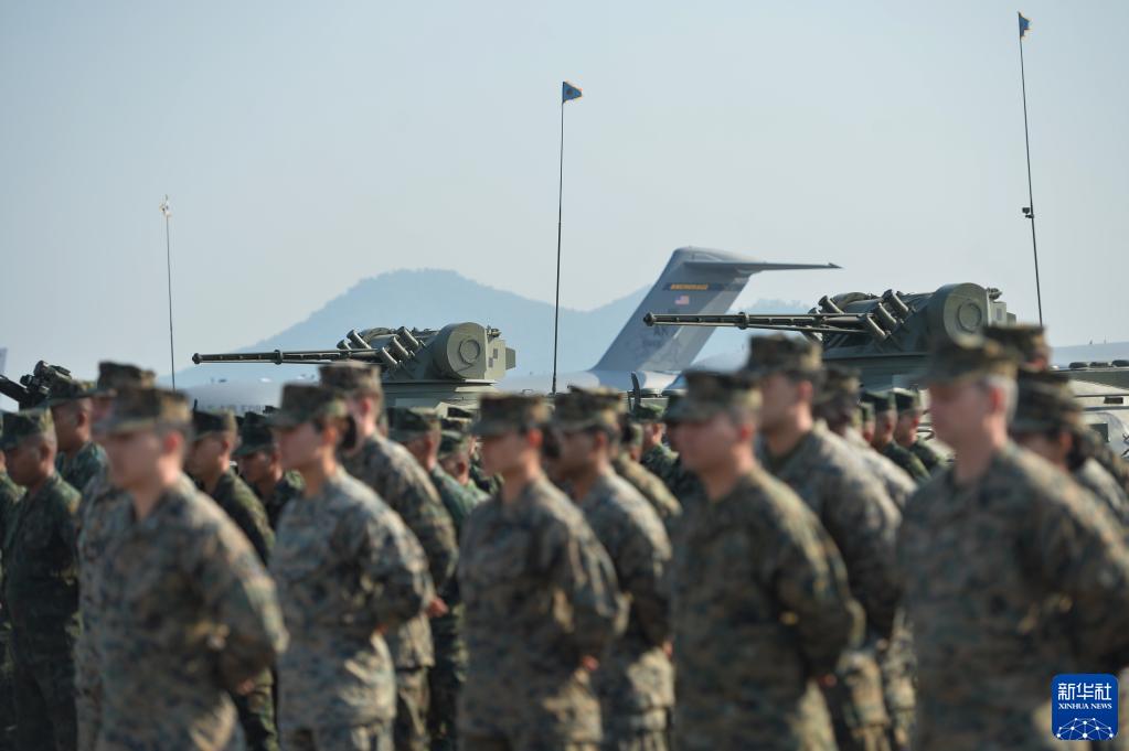 2月28日,多國軍人在泰國羅勇府烏塔堡海軍基地出席開幕式。