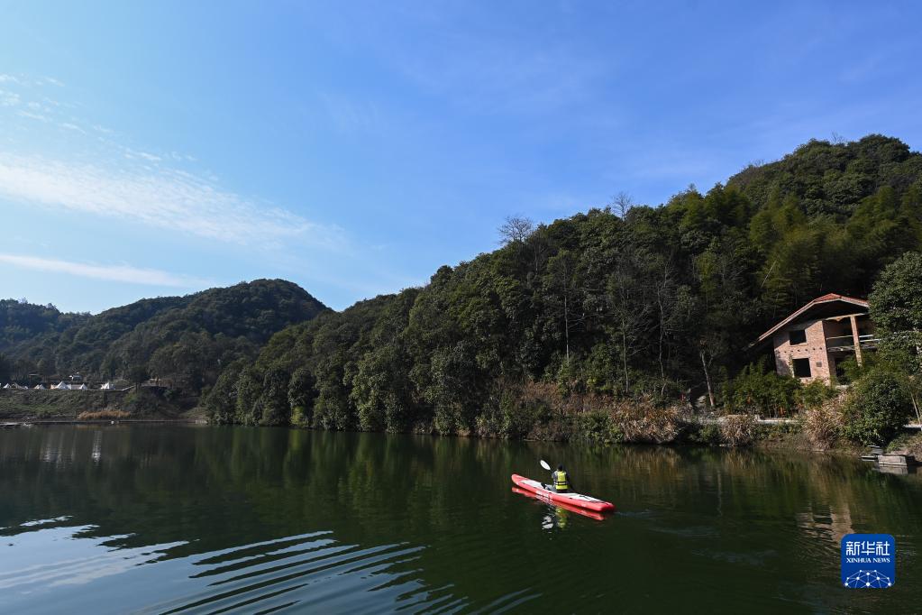 2月28日,在杭州市臨安區(qū)玲瓏街道前山村51Camp營(yíng)地,負(fù)責(zé)人丹裕在劃槳板。