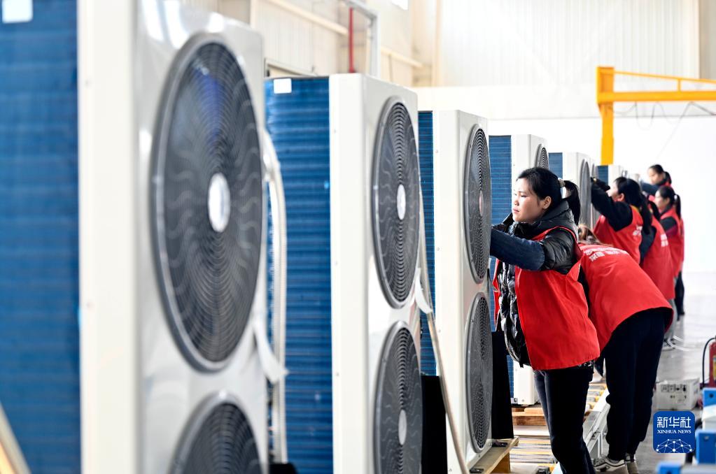 2月28日,工人在柳江區(qū)一家電器企業(yè)的車間里檢查即將下線的熱泵產(chǎn)品。